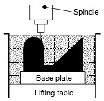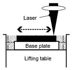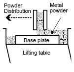 Metal powder is distributed spread out* on the base plate installed on the table.